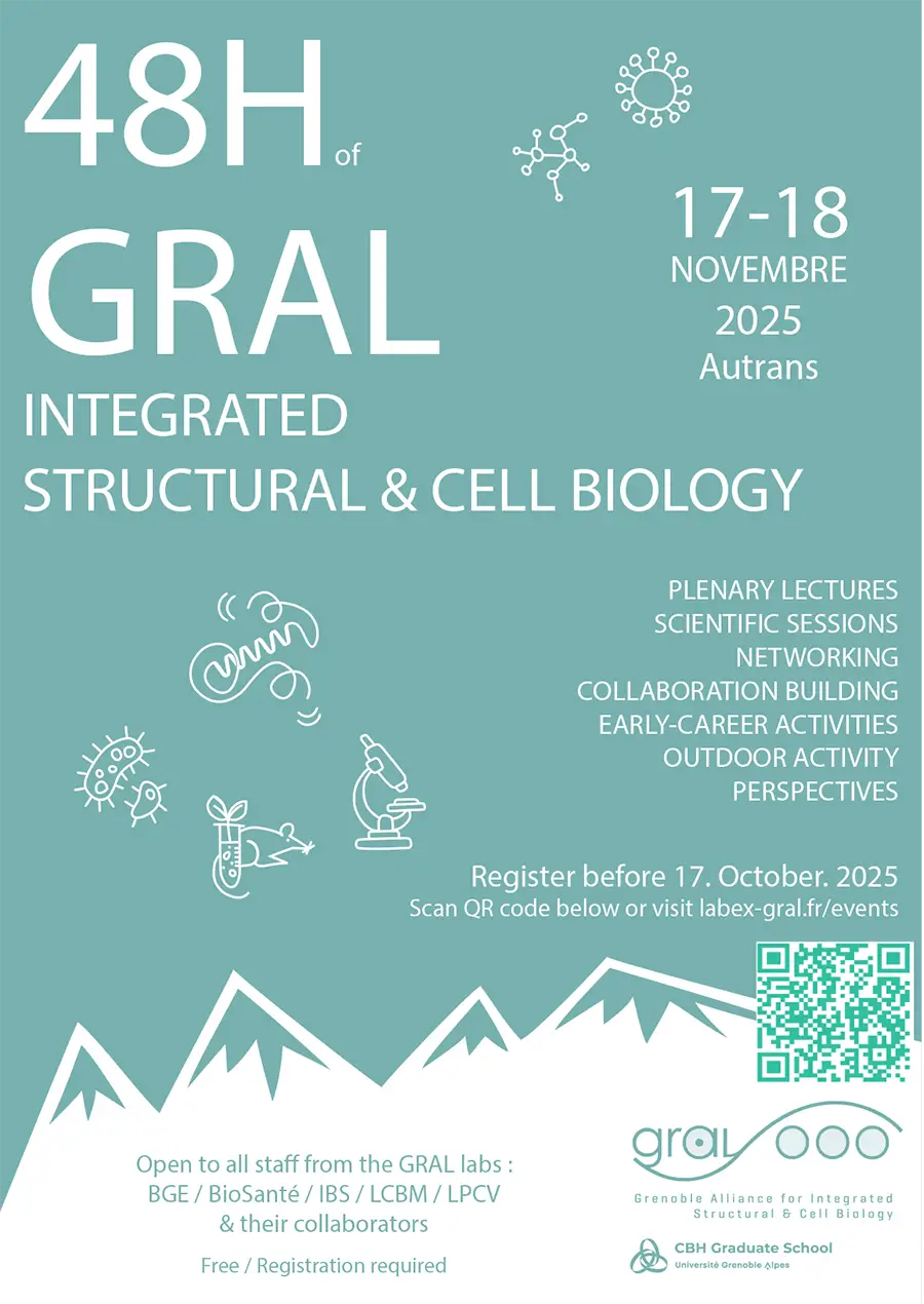 The “48H of GRAL” is an excellent opportunity to strengthen interactions within the GRAL community, and included plenary lectures, poster sessions, and discussions. Approximately 150 participants from the GRAL labs (BioSanté, BGE, IBS, LCBM, and LPCV) as well as close collaborators in Grenoble (DPM, EMBL, ESRF, GIN, IAB, LBFA, LIPHy, SyMMES, TIMC, …) are expected.